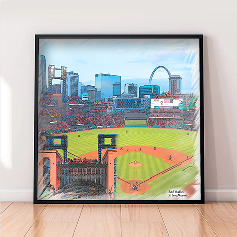 Busch Stadium Print, Artist Drawn Baseball Stadium, St. Louis Cardinals Baseball