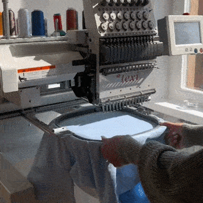 Step 3: Embroidered onto sweatshirt/hoodie: We start embroidering clothes with computerized embroidery machines, which are very advanced and professional machines that can achieve high speed, high efficiency, and fine embroidery.
