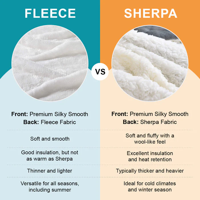 💦There are 2 material options - Fleece and Sherpa. Choose the material that fits your purpose.