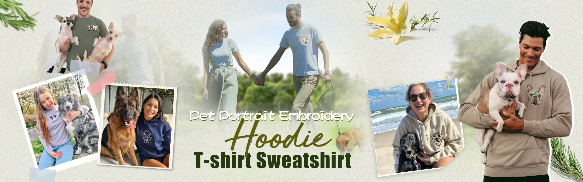 Custom Premium Handcrafted Pet Photo Embroidery with Pet Name T-shirt Sweatshirt Hoodie