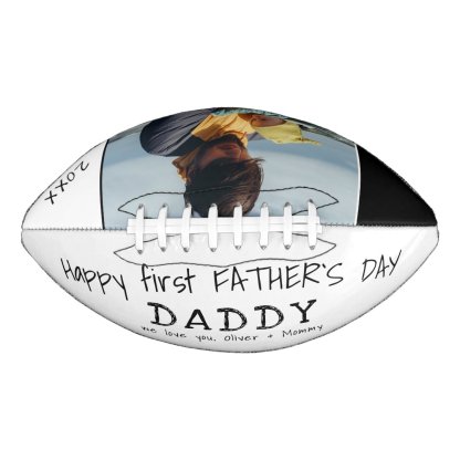 Happy first Father`s Day Daddy Dad Photo Basketball. Text is in simple hand-drawn fonts in black font on white background. You can change daddy into dad, papa, pap,... and add your photo. A cute gift and a sweet keepsake for 1st Father`s Day for the new dad.